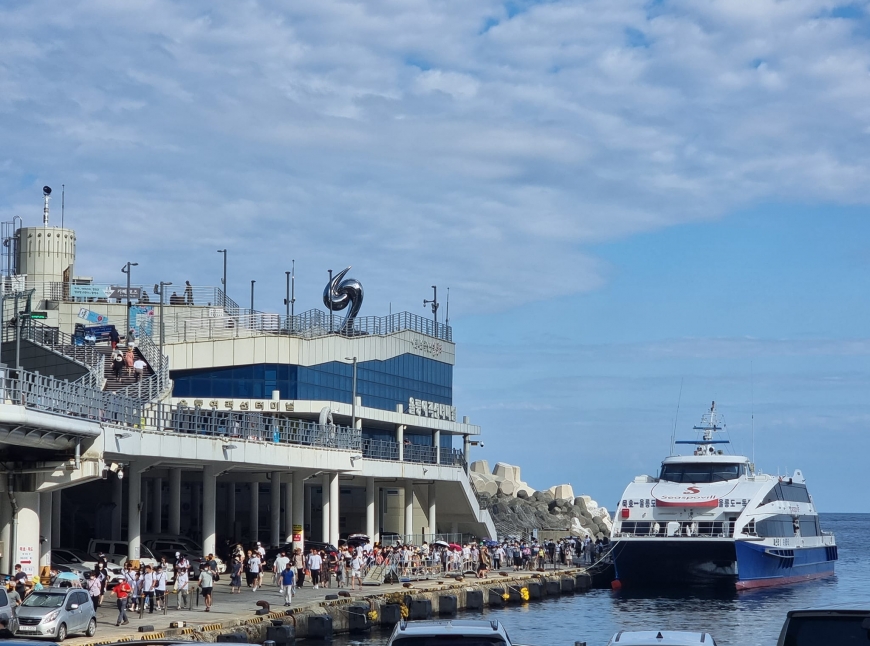 동해시 묵호항여객터미널 주차장 도착후 아침식사 를 합니다 묵호항여객선터미널도착후 배표받는방법 대합실1층 터미널매점 에서 에서 대표자 이름.인원 말씀후 배표받으세요 배표담당자:010-4258-5013 친절과정성을 다해 고객님을 모시겠습니다 서울--묵호 셔틀버스 새벽샌딩자: 010-3137-1312 ■.준비물:신분증 꼭 지참하세요 신분증 미지참시에는 여객선 승선이 거절됩니다 핸드폰 카메라 로 찍은 신분증 절대 승선불가 합니다 울릉도독도전문회사 서울한반도투어 주말 휴일.야간상담가능 (07:00~ 21:30) TEL:02-777-8883