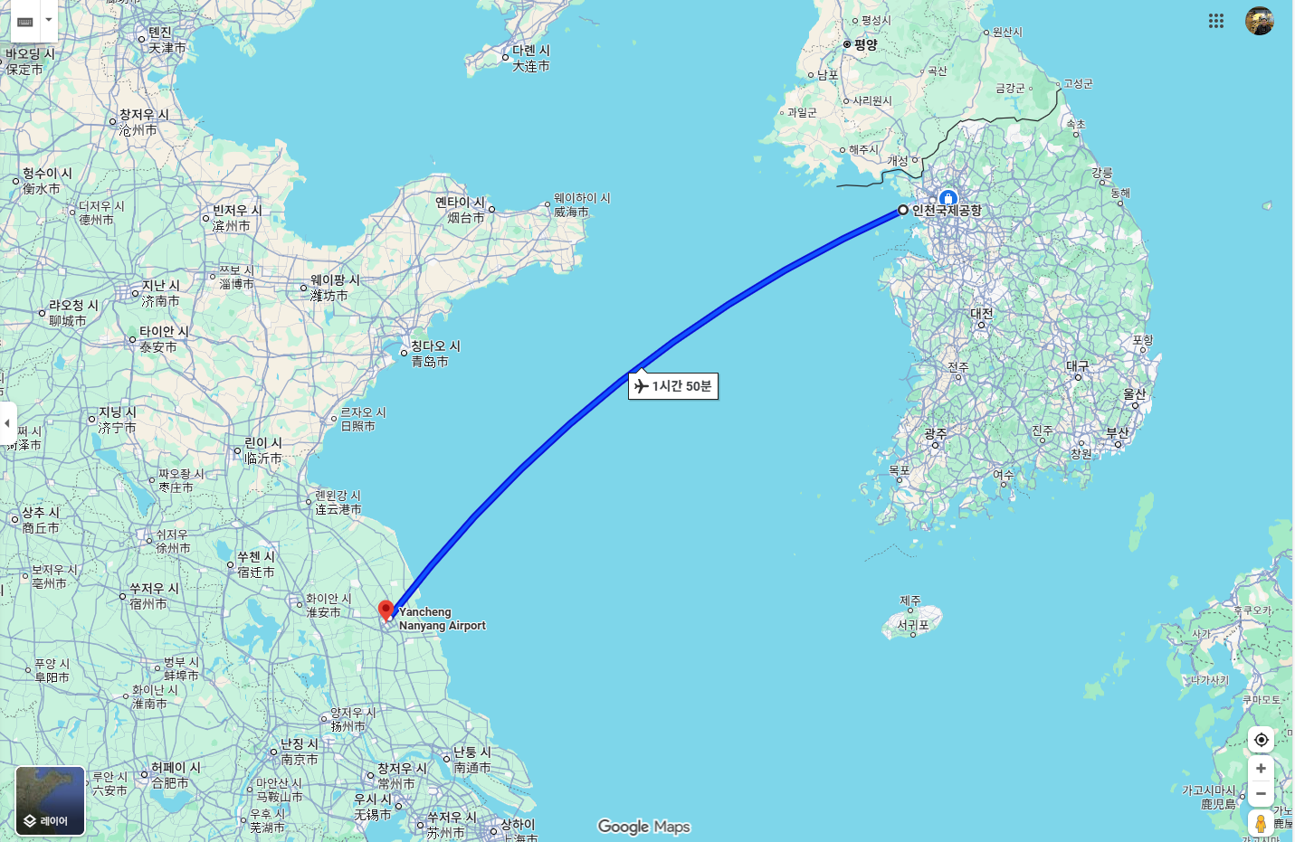 옌청(YNZ) 난양 국제공항 도착 후 가이드미팅 |
